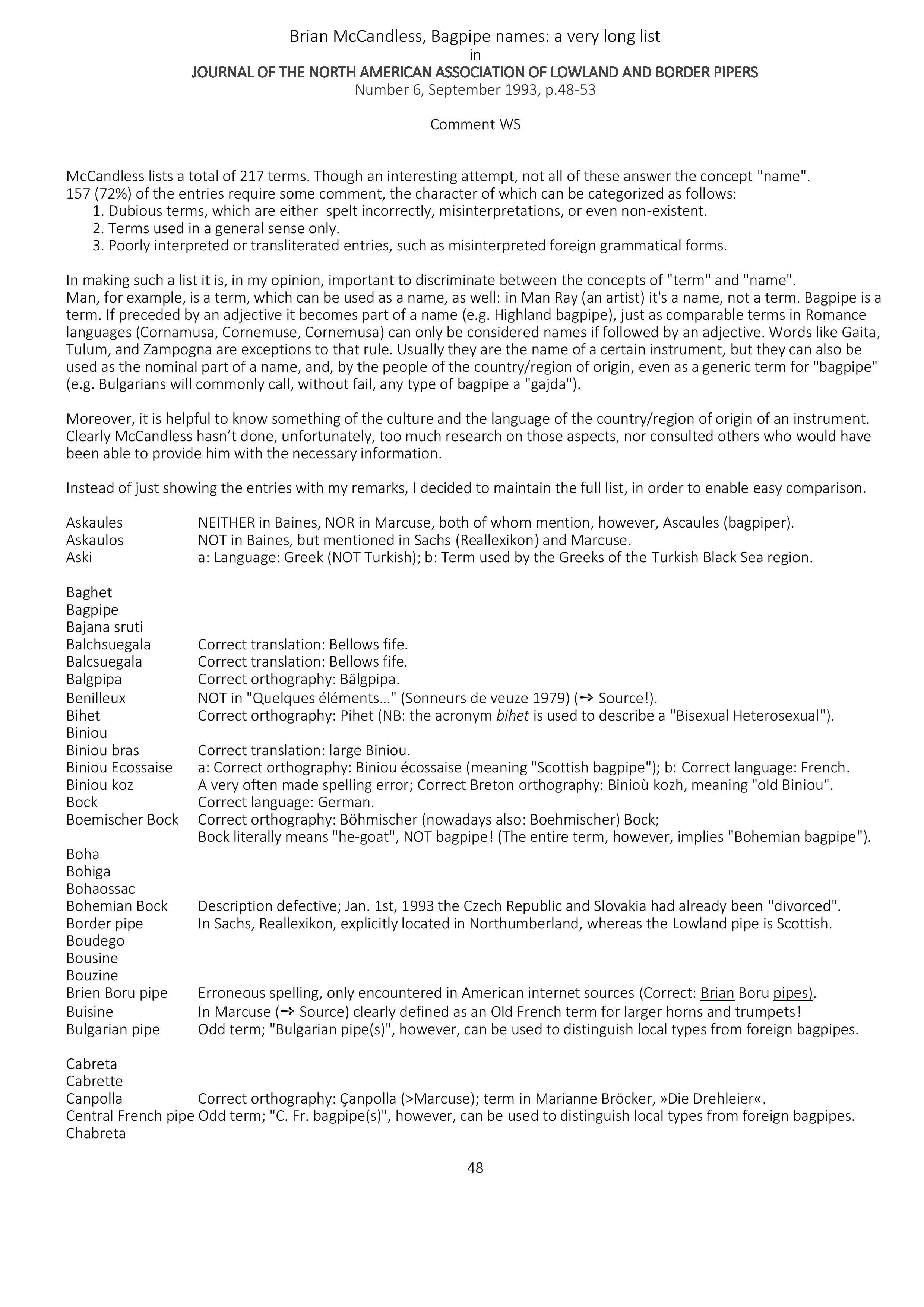 McCandless, »Bagpipe names« (1993). 2016 (5 p.)
