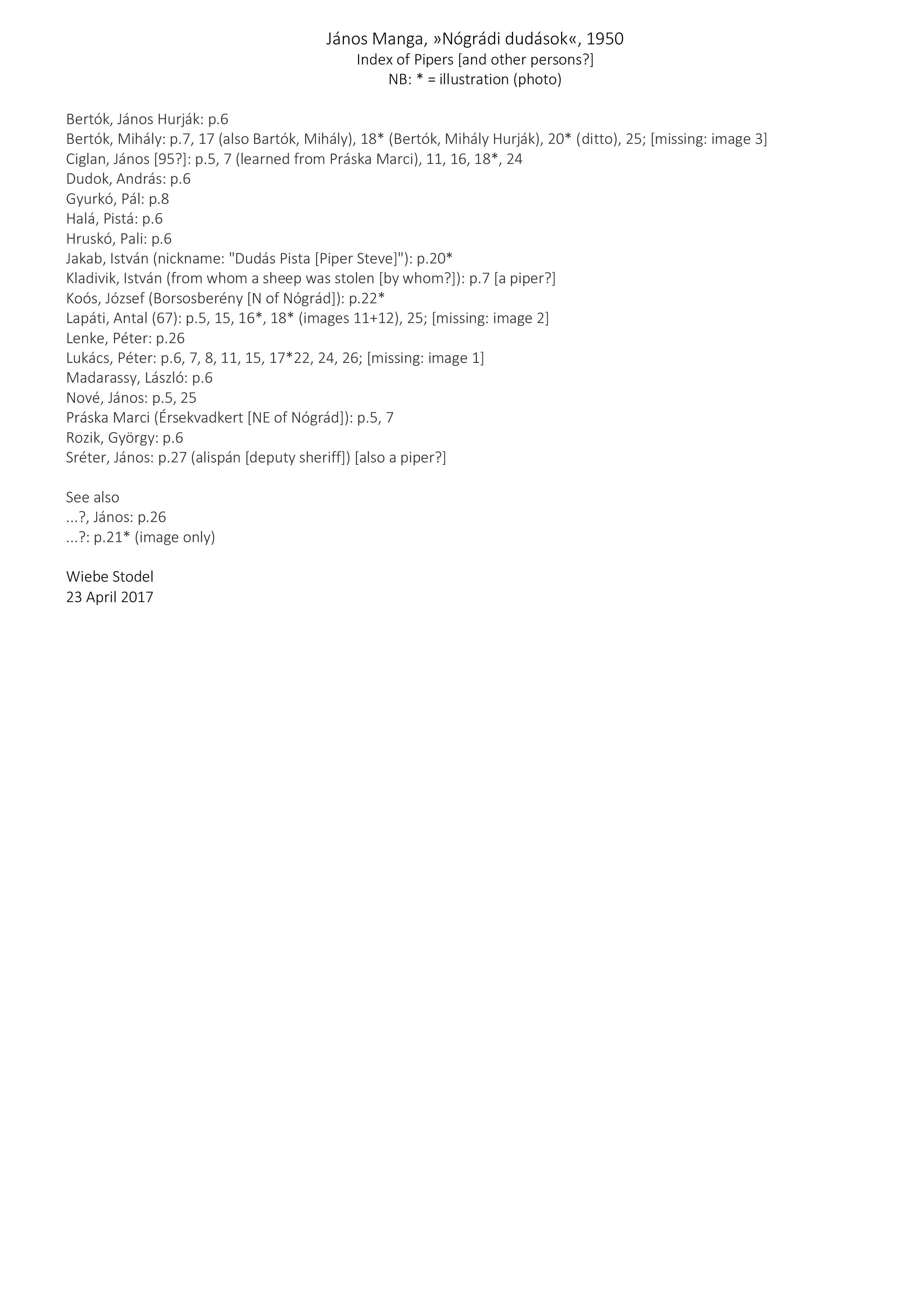 Pipers index Manga, »Nógrádi dudások« (1950). 2017